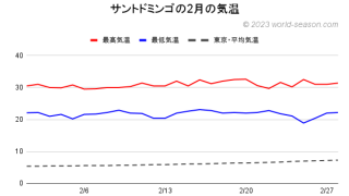 ドミニカ共和国(サントドミンゴ)の2月の気温と服装を紹介。ドミニカ共和国の2月の気温は何℃?現地の天気は良い、悪い?雨は多い、少ない?ドミニカ共和国の2月の気候は暑い、快適?2月のドミニカ共和国への旅行の服装は?観光での注意点は何?旅行前に是非ご覧下さい!