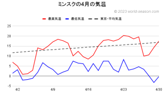 ベラルーシ ベラルーシ・ミンスクの4月の気温と服装 ベラルーシ(ミンスク)の4月の気温と服装を紹介。ベラルーシの4月の気温は何℃?現地の天気は良い、悪い?雨は多い、少ない?ベラルーシの4月の気候は寒い、暖かい?4月のベラルーシへの旅行の服装は?観光での注意点は何?旅行前に是非ご覧下さい! 2023.07.14 ベラルーシ